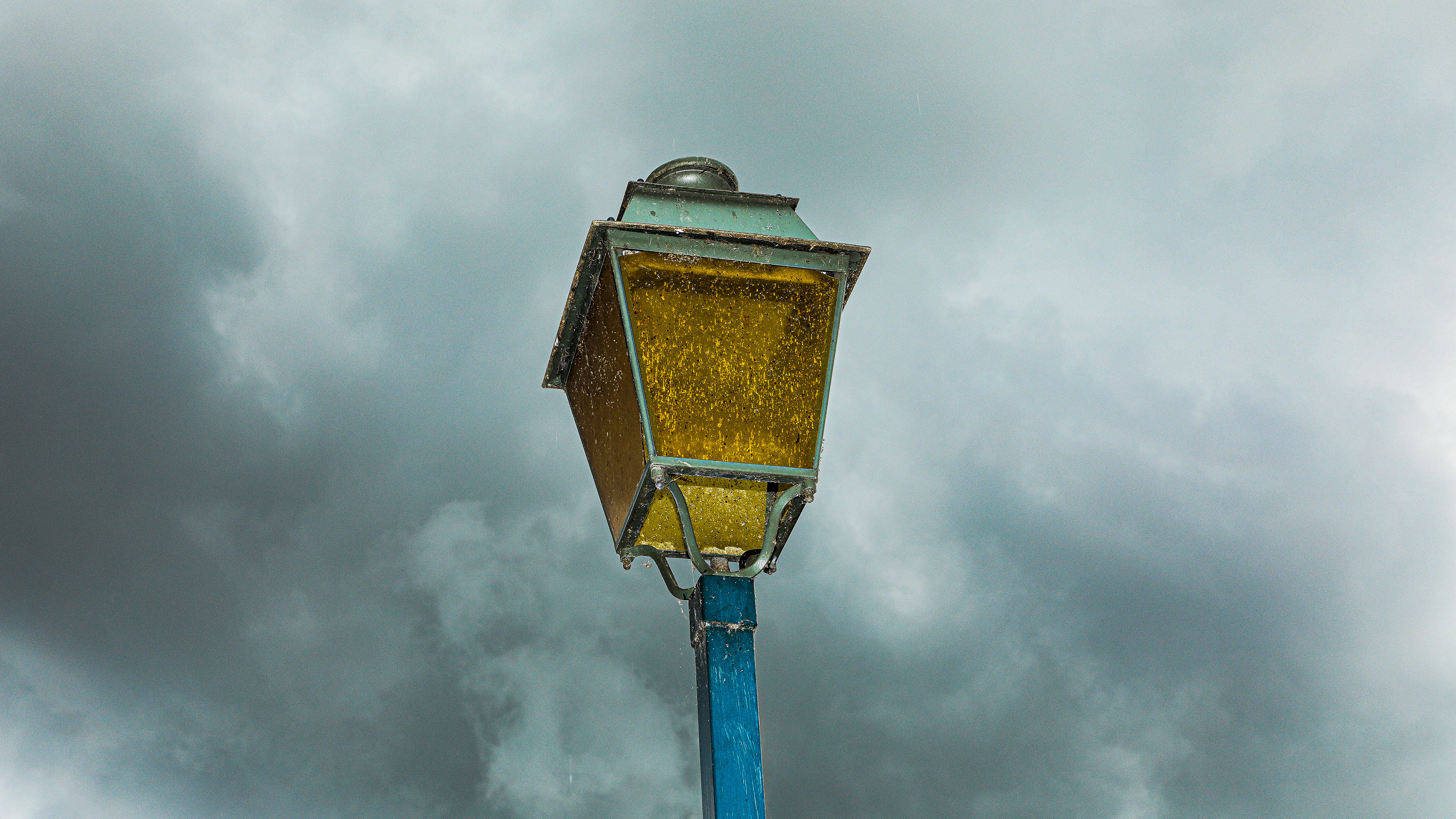 La lumière tamisée d’un jour pluvieux révèle les contours paisibles d’une ville pleine de caractère.